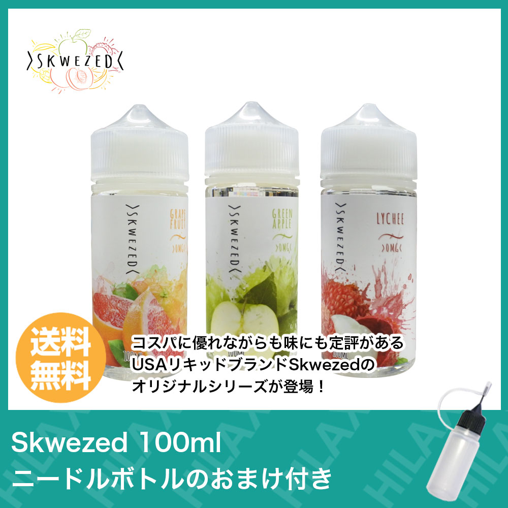 【送料無料】 Skwezed スクーズド 100ml 電子タバコ リキッド 大容量 USA アメリカ製 タール ニコチン0 グレープフルーツ ライチ アップル 柑橘系 爆煙 pod型 に便利なニードルボトル付 VAPE ベイプ 爆煙 Hilax